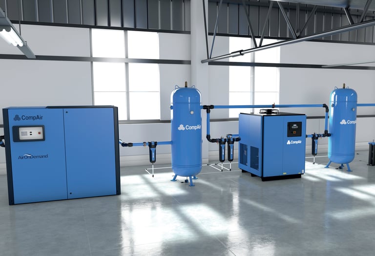 Whether for a new or existing plant, we design and install compressed air systems tailored to your specific requirements.